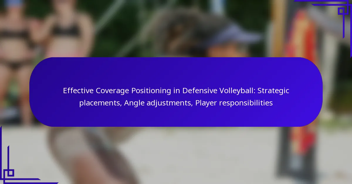 Effective coverage positioning in defensive volleyball is essential for maximizing a team’s defensive capabilities. By focusing on strategic placements, angle adjustments, and clearly defined player responsibilities, teams can significantly improve their response to opponents’ attacks. Understanding these elements allows players to anticipate movements and optimize their defensive strategies on the court.