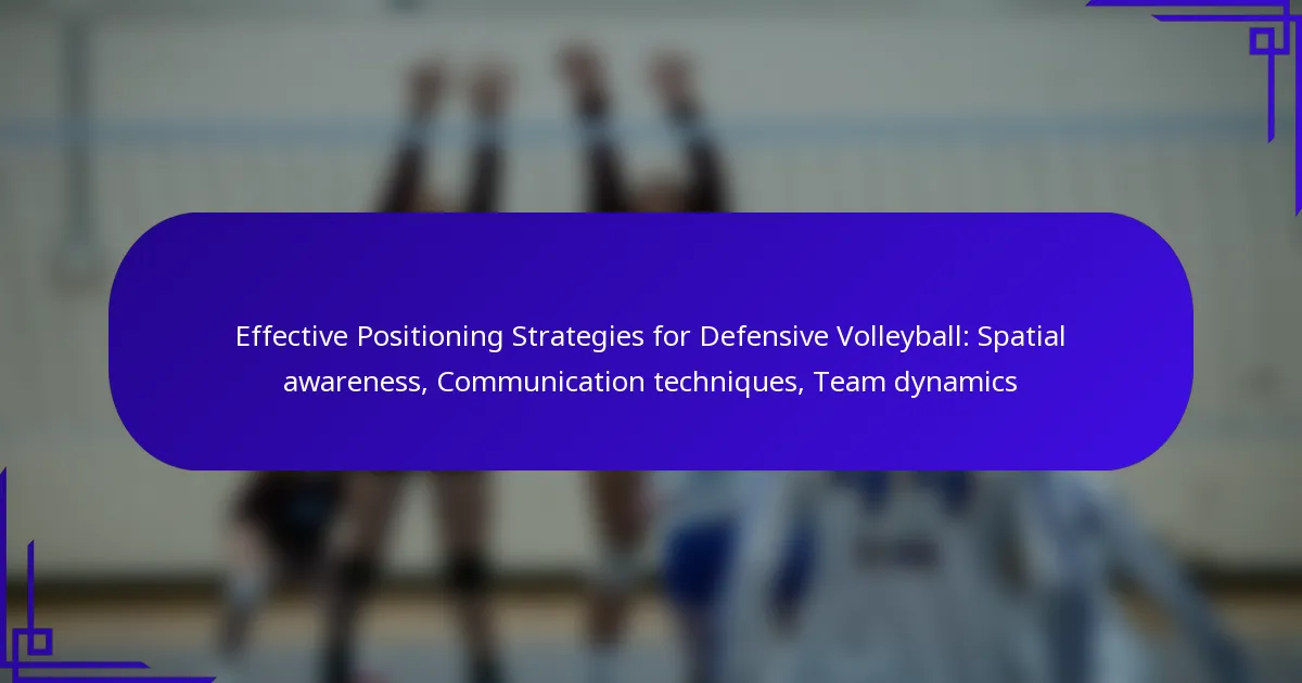 Effective positioning strategies in defensive volleyball hinge on spatial awareness, communication techniques, and strong team dynamics. By mastering court positioning and anticipating opponent movements, players can significantly enhance their defensive effectiveness. Clear communication among teammates fosters coordination and responsiveness, while a cohesive team dynamic further elevates overall performance during matches.