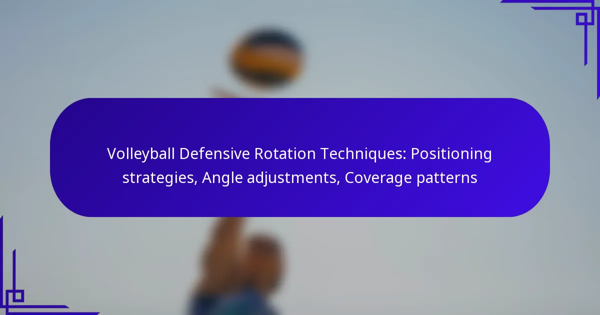 In volleyball, effective defensive rotation techniques are vital for a team’s success on the court. Key strategies include understanding player roles, optimizing positioning, and making necessary angle adjustments to enhance coverage. By mastering these techniques, teams can minimize gaps and improve their ability to respond to opponents’ attacks, ensuring a more robust defense.